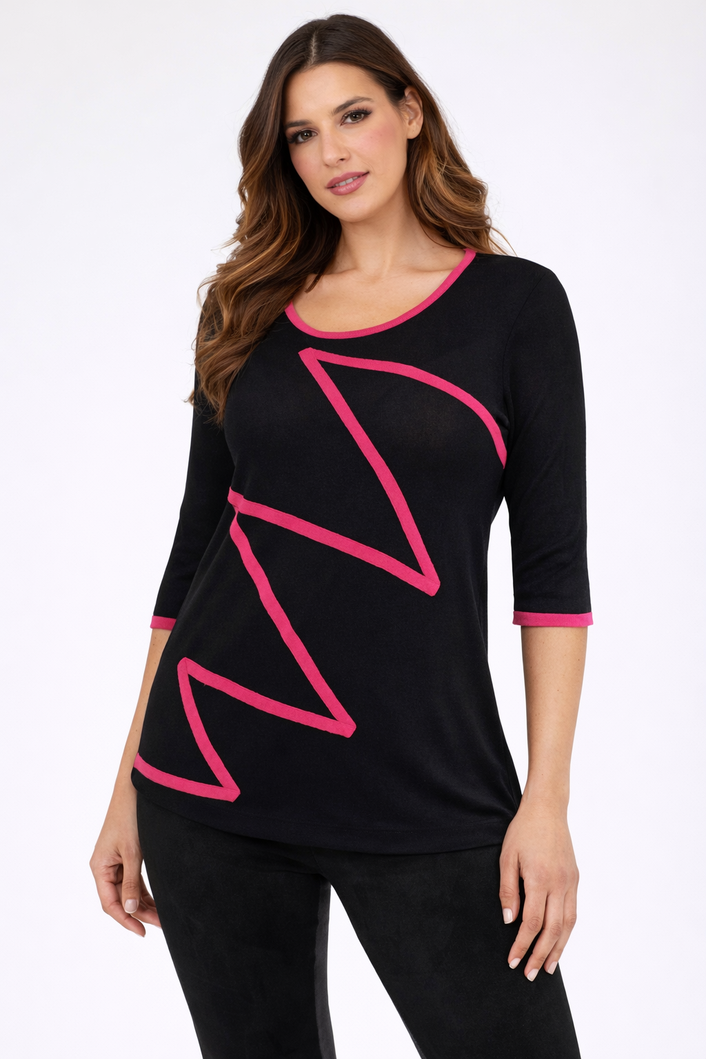 Why settle for the straight and narrow when you can go your own way? This ANGEL sweater has a zig-zag graphic treatment that lends a spontaneous air to an essential piece.