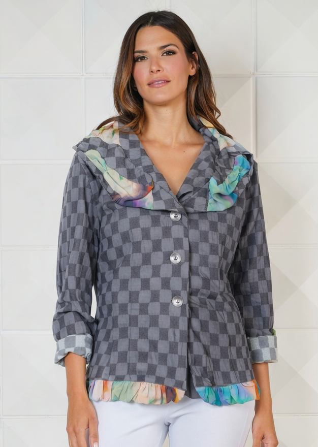 Cárdigan con volantes a cuadros