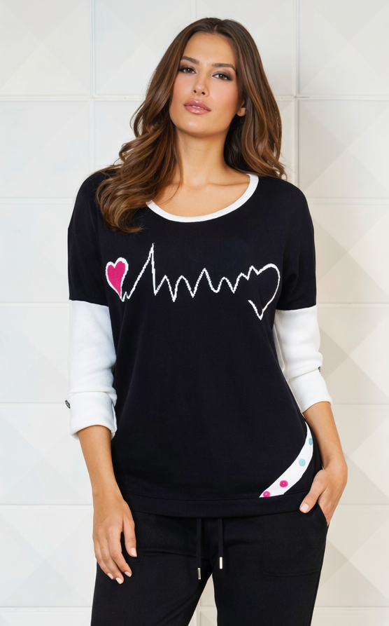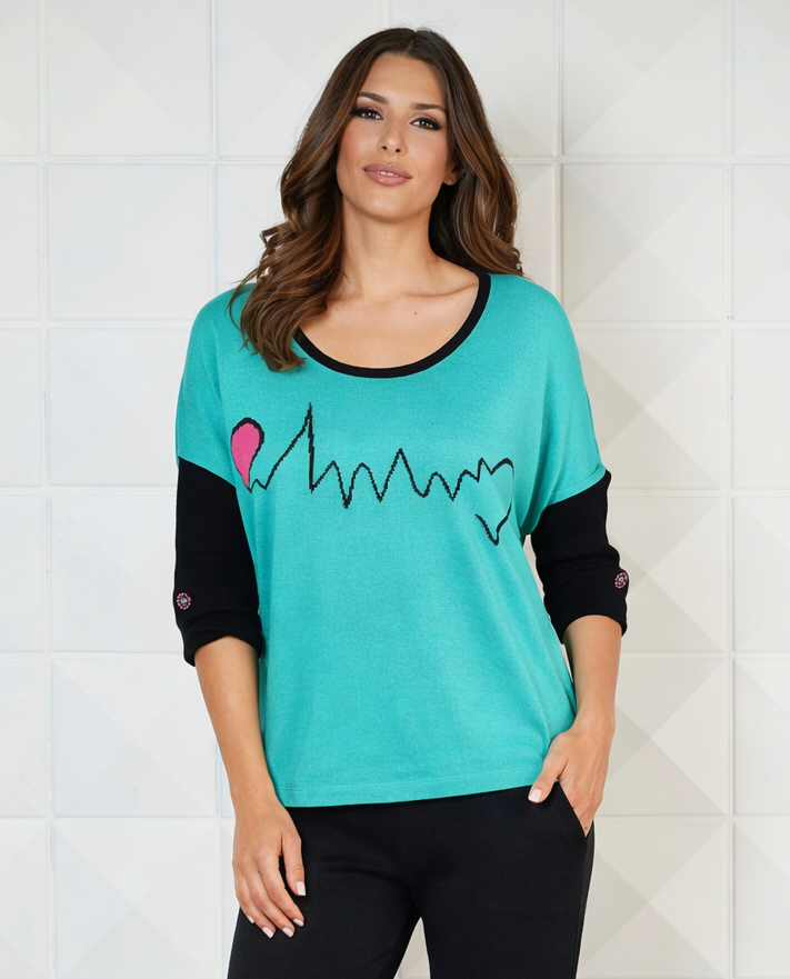 No es sólo un conjunto, es un tema de conversación. Con un diseño gráfico evocador pero eternamente alegre, este suéter de ANGEL será un bienvenido recordatorio para seguir siempre tu corazón.
