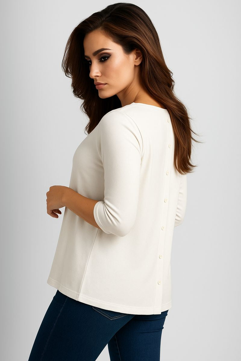 Parfois, il suffit de voir les choses sous un angle différent. Avec une encolure dégagée sur le devant, ce haut ANGEL est un basique essentiel, mais retournez-le et les boutons dans le dos lui confèrent une sensibilité de design moderne.